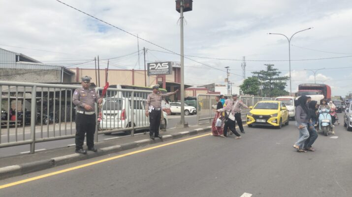 Polsek Arjawinangun Gatur Lalin di depan pasar sandang Tegalgubug.
