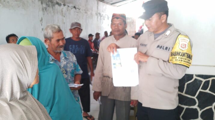 Arjawinangun, Bhabinkamtibmas Desa Kebonturi Polsek Arjawinangun Polresta Cirebon Aipda Rohiyat SH hadir di Kantor Pos Arjawinangun bersama warga masyarakatnya, dalam kegiatan tersebut Bhabinkamtibmas Desa