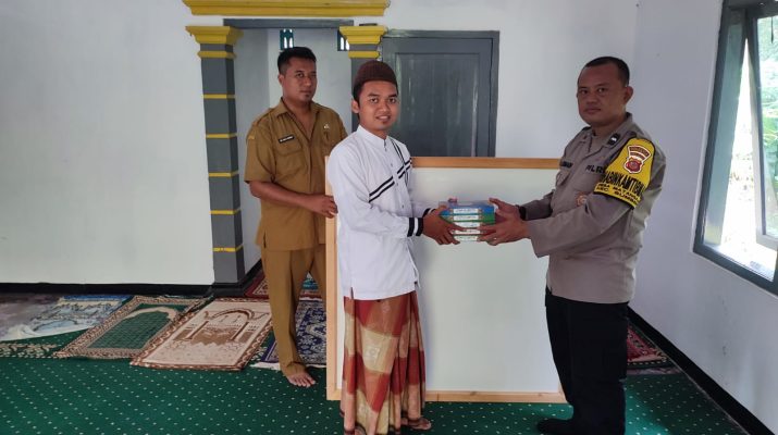 Bhabinkamtibmas Desa Matangaji Polsek Sumber Polresta Cirebon Polda Jabar Aipda Carmadi memberikan bantuan sosial berupa Al – Quran dan Papan Tulis ke DKM Mushola Al Iman Blok Sigendang RT. 01 RW. 03 Desa Matangaji sebagai wujud kepedulian Polri dalam bidang Pendidikan dan Keagamaan.(5/4/23)