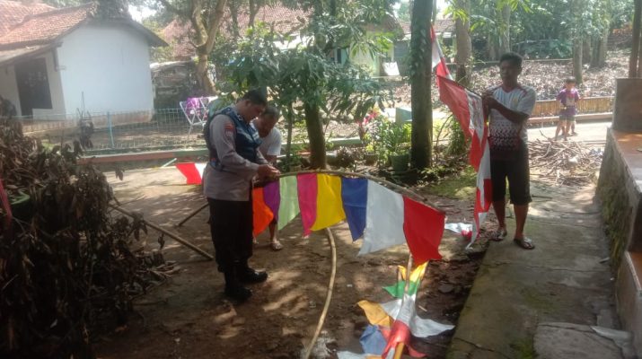 Giat membantu warga yang sedang kerja bakti memasang umbul-umbul dalam rangka persiapan pelaksanaan peringatan 1 Abad NU yang akan dilaksanakan oleh Pengurus Ranting NU kelurahan babakan, dilanjutkan menyampaikan pesan untuk tetap menjaga kebersihan,keamanan lingkungannya
