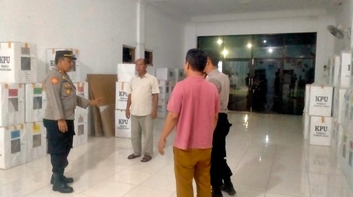 “Hasil pengecekan didapati gudang logistik Pemilu dalam keadaan aman, terkunci dan tersegel serta anggota linmas di bantu para Bhabinkamtibmas dan Babinsa tetap siap dan siaga di lokasi,” tandasnya.