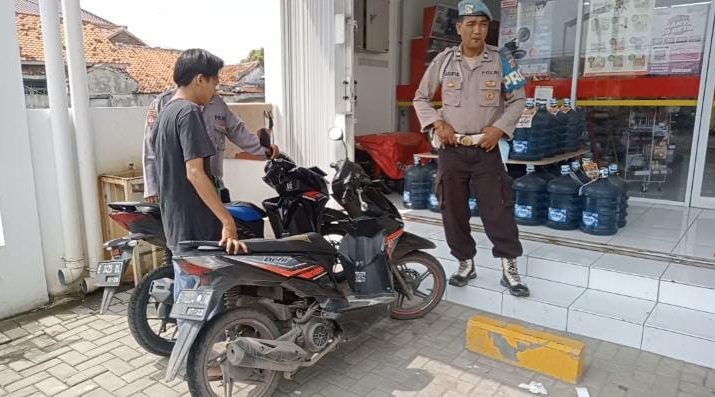 Anggota Patroli Polsek Panguragan dan Anggota Babinkamtibmas Aiptu Hendra Gunawan dan Brigadir Hasbi Asidki melaksanan patroli ke tempat-tempat Obyek Vital seperti dipertokoan Alfamart, Indomart, Bank Bri, Kantor Pos, Pegadain berikut tempat sekolah di Wilayah hukum Polsek Panguragan Kec. Panguragan kab. Cirebon. Senin, 24/04/2023