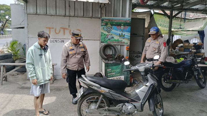 Perwira pengendali dinpis PAM gebang yang berdinas pada hari Sabtu tanggal 29 April 2023 IPDA SIAGA BUDIAJI dan IPDA ADE DERMAWAN beserta dua anggota melaksanakan patroli jalur perbatasan Losari gebang mengantisipasi lonjakan arus balik dari arah Jawa menuju Jakarta,dalam perjalanan patroli petugas mendapati seorang pengendara sepeda motor yang rantainya putus dan jauh dari bemgkel.