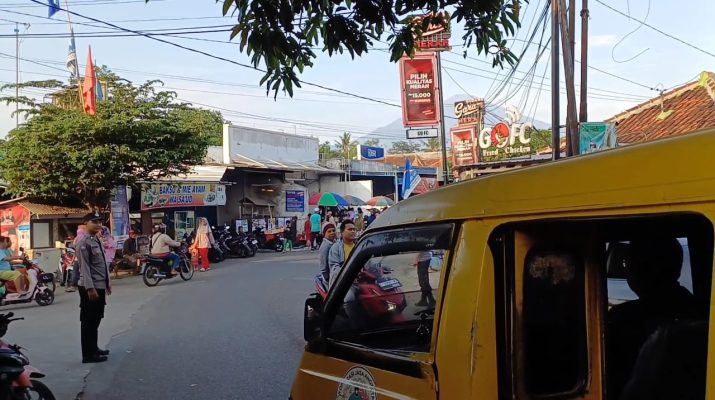 Cirebon– Personil Polsek Sedong Polresta Cirebon Briptu Yoggi Iskandar bersama Briptu Rahmat Krisna Permadi melaksanakan Pengaturan lalulintas diPerempatan jalan Pasar Sedong tepatnya Desa Sedonglor Kecamatan Sedong Kabupaten Cirebon. Sabtu. (30/03/2024).