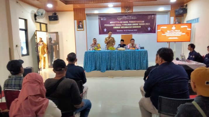 Babakan – Senin (19/02/2024), pelaksanaan Pembukaan Rapat Pleno Terbuka Rekapitulasi Hasil Penghitungan Suara Pemilu 2024 Tingkat PPK Kecamatan Babakan Kabupaten Cirebon yang di laksanakan Pada hari Senin tanggal 19 Februari 2024, pukul 08.00 Wib, hingga waktu yang belum ditentukan, rangkaian acara Rapat Pleno Terbuka Rekapitulasi Hasil Penghitungan Perolehan Suara Pemilu 2024 tingkat kecamatan digelar bertempat di Ruang Binakarya Kecamatan Babakan Kabupaten Cirebon.