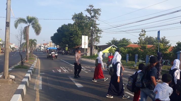Personil Polsek Plered melaksanakan Gatur Lalu lintas pagi di Jln. Otista tepatnya depan SDN 3 Tegalsari dan SMP N 2 Plered Ds. Tegalsari Kecamatan Plered Kabupaten Cirebon.