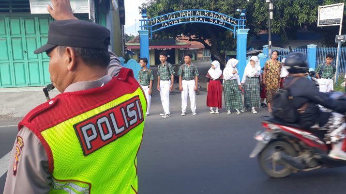 Personil Polsek Plered melaksanakan Gatur Lalu lintas pagi di Jln. Otista tepatnya depan SDN 3 Tegalsari dan SMP N 2 Plered Ds. Tegalsari Kecamatan Plered Kabupaten Cirebon.