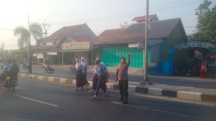 Jajaran Personil Polsek Plered Polresta Cirebon Polda Jabar, melaksanakan Gatur Lalu lintas pagi di Jaln Raya Otista tepatnya di depan SDN3 Tegalsari dan SMPN2 Plered Ds. Tegalsari Kec Plered Kab Cirebon.