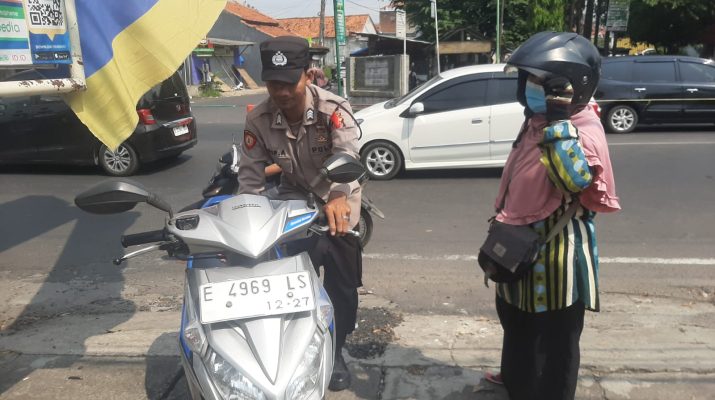 Personil Pos Pam Mountoya Polresta Cirebon Bantu seorang ibu yang kesulitan menyalakan sepeda motor