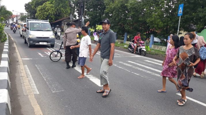 Gatur pagi hari ini dilaksanakan oleh Kanit Binmas Aiptu Sulaiman mengingat banyak kendaraan yang lalu lalang melintas membuat arus lalu lintas cukup ramai. Namun dengan kehadiran personil Polri tersebut sehingga para pemakai jalan lebih berhati – hati dan dapat dengan nyaman dan lancar dapat beraktifitas.