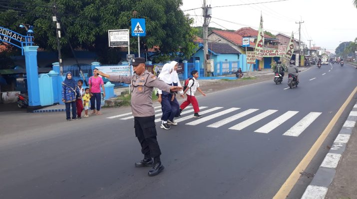 PH. Pagi Polsek Plered Polresta Cirebon Pengaturan Lalu-lintas di depan SDN3 Tegalsari Plered menyebersngkan anak-anak Sekolah.