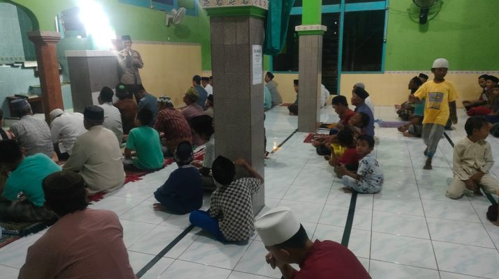 Arjawinangun, Di bulan suci Ramadhan yang penuh berkah ini Kapolsek Arjawinangun Polresta Cirebon Kompol H.Sayidi SH bersama Bhabinkamtibmas Desa Jungjang wetan Aipda Slamet S melaksanakan kegiatan Sholat Tarawih keliling di masjid Desa Jungjang wetan dalam kesempatan tersebut sebelum pelaksanaan Sholat Tarawih di mulai Kapolsek Arjawinangun memberikan pesan pesan Kamtibmas kepada Jama,ah yang ada di masjid tersebut agar selalu menjaga lingkungan nya masing masing selama bulan Ramadhan serta menjaga dan mengawasi putranya jangan sampai terlibat tawuran ataupun perang sarung dengan demikian adanya himbauan tersebut tercipta Kamtibmas yang aman kondusip.