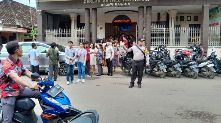 Kapolsek Arjawinangun Polresta Cirebon AKP. Sumairi SH.M.Si mengatakan sehubungan dengan adanya kegiatan kebaktian Polsek Arjawinangun mengambil langkah dengan Sterilisasi sebelum dilaksanakannya kegiatan ibadah Rutin hari Minggu, Melakukan pemeriksaan terhadap barang bawaan jemaat di lakukan Pengamanan baik secara terbuka maupun tertutup oleh Personil Polsek Arjawinangun guna terciptanya kamtibmas yang aman kondusip.