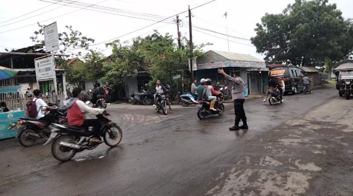 Laksanakan giat pengaturan lalulintas di pagi hari guna kelancaran dan ketertiban di jalan P.Sutra jaya Babakan- gebang termasuk desa babakan kec.Babakan Kab.cirebon.