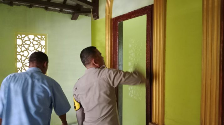 Terlihat dalam kegiatan tersebut sejumlah personel Polsek Depok membersihkan lantai dan kaca jendela masjid serta lantai dengan menggunakan alat seadanya.