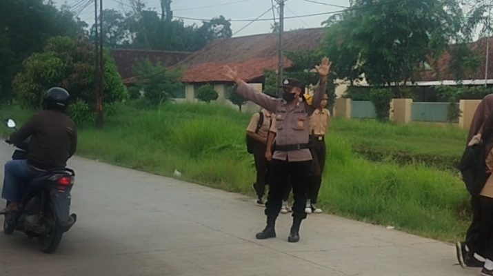 Polsek Kaliwedi Polresta Cirebon Gatur Pagi polisi berikan keamanan kepada masyarakat dan pelajar