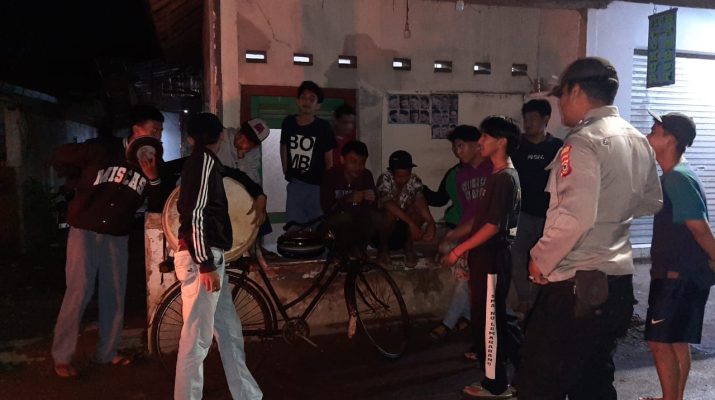 Polsek karangsembung Polresta Cirebon Bhabinkamtibmas memberikan binluh satkamling terkait Perang Sarung dan Obrog,di Pemukiman Warga.