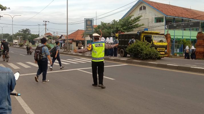 Polsek Losari – melaksanakan pengaturan pagi hari di wilayah hukum Polsek Losari – Polresta Cirebon, Sabtu (18/3/2023).