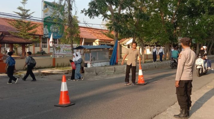 Polsek Pabedilan Bantu Penyebrangan Anak Sekolah dan Perlancar Pengendara saat Gatur Lalin PH Rawan Pagi