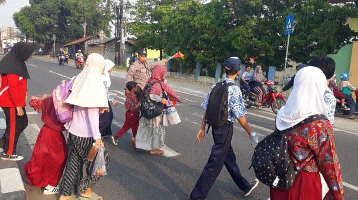 Jajaran Personil Polsek Plered Polresta Cirebon Polda Jabar, melaksanakan Gatur Lalu lintas pagi di Jaln Raya Palimanan – Cirebon tepatnya di depan SDN3 Tegalsari dan di depan SMK Nusantara Ds. Panembahan Kec Plered Kab Cirebon.