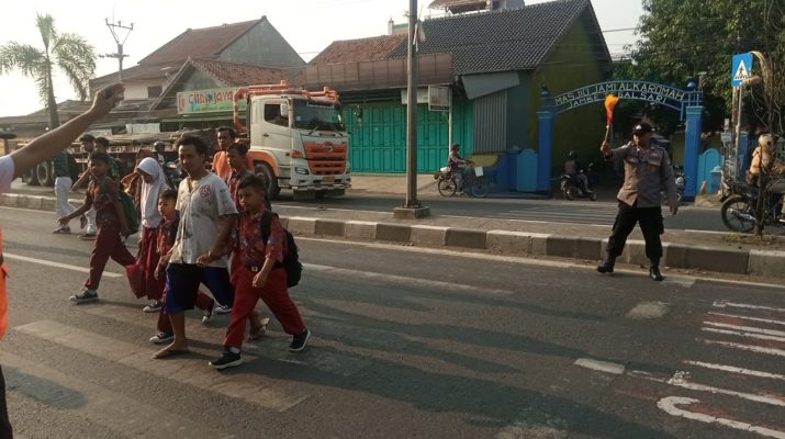 Jajaran Personil Polsek Plered Polresta Cirebon Polda Jabar, melaksanakan Gatur Lalu lintas pagi di Jaln Raya Palimanan – Cirebon tepatnya di depan SDN3 Tegalsari dan di depan SMK Nusantara Ds. Panembahan Kec Plered Kab Cirebon.