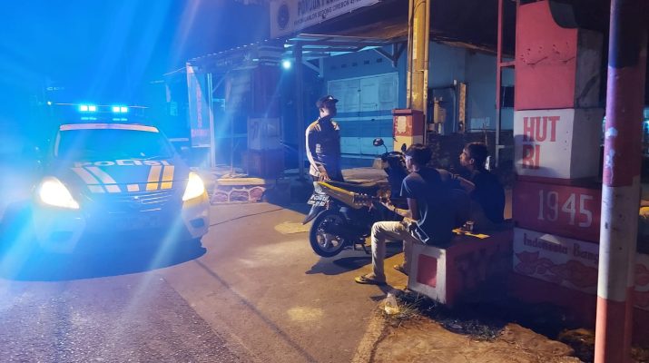 Giat Kepolisian dlm rangka cegah tangkal gangguan Kamtibmas, antisipasi C3, Genk motor dan tawuran menyampaikan himbauan kamtibmas dan mengajak berperan aktif memberikan informasi kamtibmas kepada warga dan anak-anak muda yang nongkrong agar segera membubarkan diri .