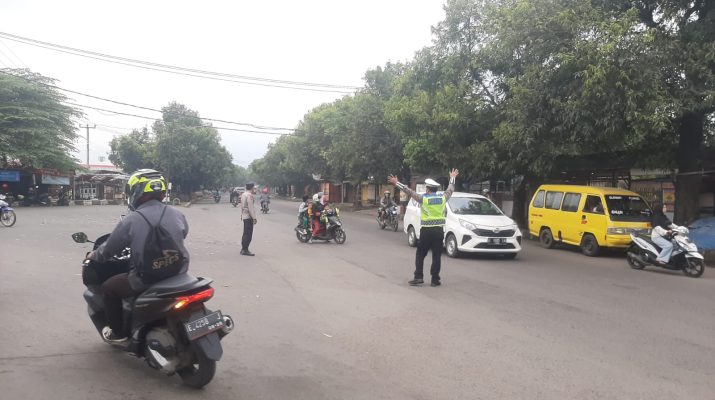 Kapolsek Sumber AKP Eddie Mulyono.SH dan jajarannya mengelar anggotanya di titik rawan kecelakan dan kemacetan disimpul jalan guna melaksanakan pengaturan dan memperlambat arus guna antisipasi kemacetan dan kecelakaan.