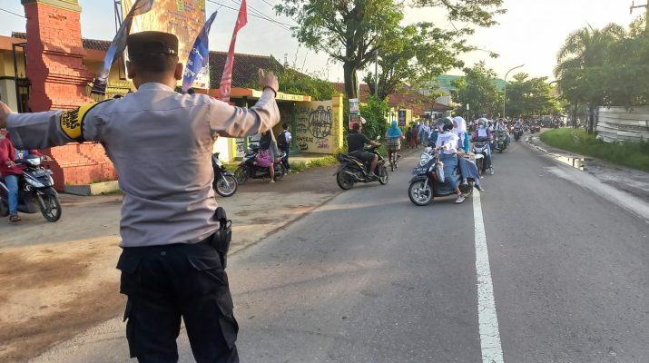 KAB. CIREBON – Personil Polsek Waled melaksanakan kegiatan rutin di pagi hari yaitu Pengaturan lalulintas antisipasi giat masyarakat, dalam rangka menjamin arus lalu lintas yang lancar dan kondusif serta kamtibmas yang aman pada saat masuk nya jam pelajaran SMA negeri 1 Waled.