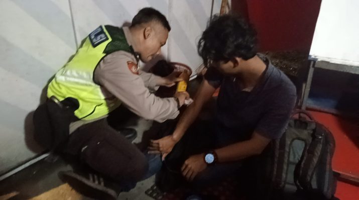 Respon Cepat anggota Pos Pam Jungjang bantu Korban pemudik yang terjatuh dari kendaraan