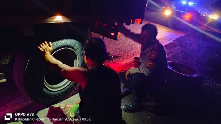 Cirebon – Unit Patroli Polsek Gebang Polresta Cirebon menunjukkan respons cepat dan kepedulian terhadap masyarakat dengan membantu seorang warga yang mengalami pecah ban mobil di pinggir Jalan Raya Pantura, tepatnya di Desa Gebang Mekar, Kecamatan Gebang, Kabupaten Cirebon, Senin (19/01/2026) sekitar pukul 01.30 WIB.