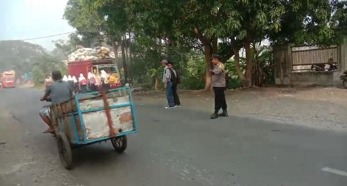 Personil Polsek Panguragan Polresta Cirebon melaksanakan Gatur Lalu lintas pagi hari di Jalan Nyimas Gandasari tepat nya di Depan Smp 1 Panguragan Kec. Panguragan Kab. Cirebon