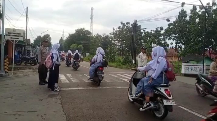Personil Polsek karangsembung Polresta Cirebon melaksanakan Gatur Lalu lintas pagi di Jalan Karangwareng Kec. Karangwareng Kab. Cirebon