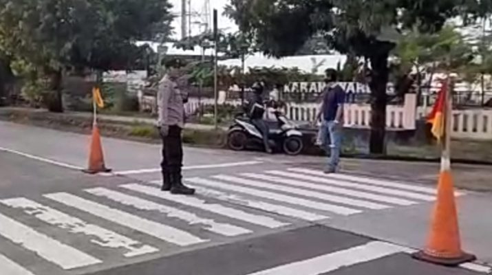 Personil Polsek karangsembung Polresta Cirebon melaksanakan Gatur Lalu lintas pagi di Jalan Karangwareng Kec. Karangwareng Kab. Cirebon
