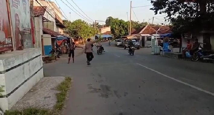 Personil Polsek karangsembung Polresta Cirebon melaksanakan Gatur Lalu lintas pagi di Jalan Karangwareng Kec. Karangwareng Kab. Cirebon
