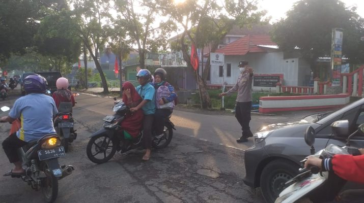 Personil Polsek Talun Polresta Cirebon melaksanakan Gatur Lalu lintas pagi di Jalan Pangeran Cakrabuana Kec. Talun Kab. Cirebon