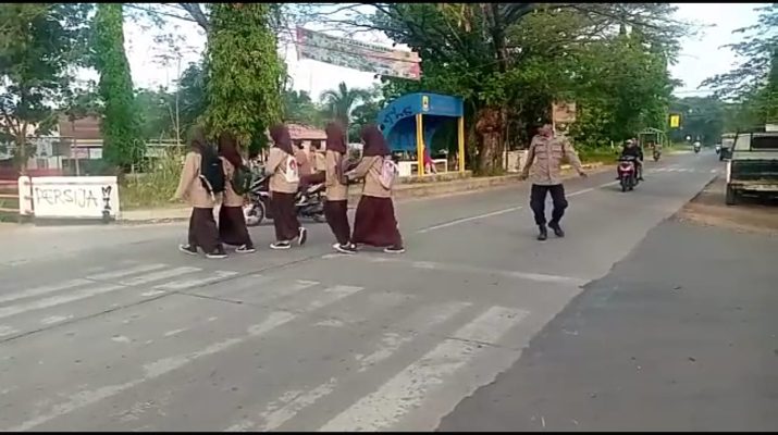 Personil Polsek karangsembung Polresta Cirebon melaksanakan Gatur Lalu lintas pagi di Jalan Karangwareng Kec. Karangwareng Kab. Cirebon
