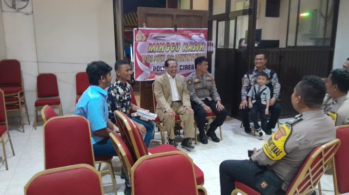 Cirebon – Dalam rangka menampung aspirasi warga Polsek Arjawinangun Polresta Cirebon secara rutin setiap hari Minggu pagi dengan menggelar Minggu kasih, kegiatan tersebut merupakan salah satu untuk menampung saran maupun masukan dari warga masyarakat, oleh karena itu Polsek Arjawinangun gelar Minggu kasih yang bertempat di Gereja Bethel Indonesia (GBI) Arjawinangun termasuk Desa Jungjang Kecamatan Arjawinangun Kabupaten Cirebon, adapun maksud dan tujuan di gelarnya Minggu kasih tersebut untuk menampung semua aspirasi semua umat Nasrani, kegiatan minggu kasih bersama Polsek Arjawinangun tersebut di pimpin oleh Piket Pawas Ipda K.Bangun beserta anggotanya, dalam kesempatan tersebut juga di hadiri juga oleh pendeta Stev Mardianto MA, pengurus gereja serta umat Nasrani Gereja Bethel Indonesia (GBI) Arjawinangun, dalam kegiatan Minggu Kasih menyampaian kepada Pendeta, Pengurus Gereja serta umat Nasrani Bahwa pada pagi hari bisa bertemu bapak pendeta, pengurus gereja serta umat Nasrani di gereja GBI Arjawinangun dalam rangka jalin tali silaturahmi, dan kita bisa bertemu dalam rangka saran dan keluhan serta aspirasi dari masyarakat khususnya para Jamaah Gereja GBI Arjawinangun, bilamana ada permasalahan – permasalahan Kamtibmas yang menjadi masukan dan saran saya ingin berkenan langsung dari para Jamaah untuk Kamtibmas yang Kondusif di Desa Jungjang, umumnya di Kecamatan Arjawinangun, Kabupaten Cirebon.