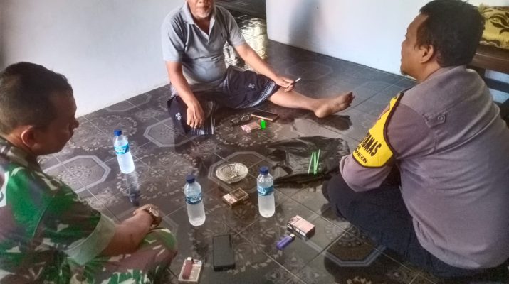 Bhabinkamtibmas Desa Bulak Bripka Galih bersama sama Babinsa pada saat menyambangi warga Binaanya memberikan. Himbauan Kamtibmas kepada warga tersebut guna menciptakan desa yang aman kondusip khususnya di Desa Binananya