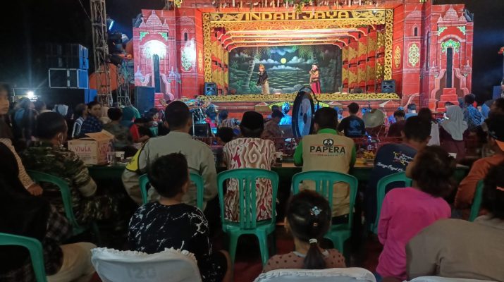 Dalam rangka menciptakan rasa aman, Bhabinkamtibmas Aipda Ronal Regen dan Babinsa Serda Agung serts 2 anggota Reskrim hadir dalam rangka pengamanan dan monitoring giat hiburan rakyat Sandiwara