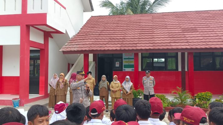 Wakapolsek Waled Polresta Cirebon Polda Jabar Iptu Muhroni SH menjadi Pembina Upacara di Bantu Kanit Binmas Aiptu Achmad Suwandi beserta Bhabinkamtibmas Desa Gunungsari Bripka Anjar Pamungkas dalam Upacara Bendera di SDN 1 Gunungsari Desa Gegunung Kec. Waled Kab Cirebon Senin, (20/02/2023).07.00 WIB.